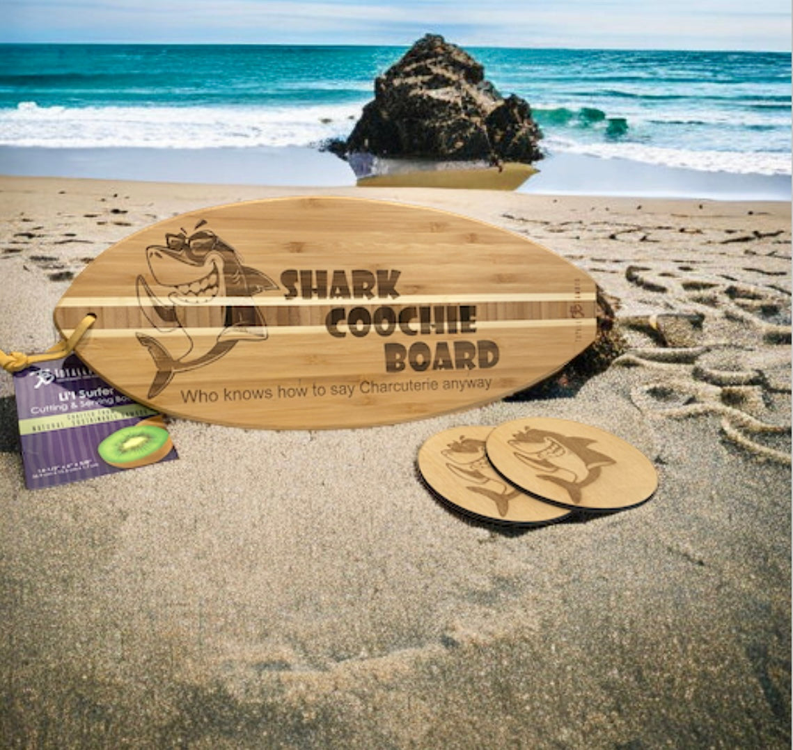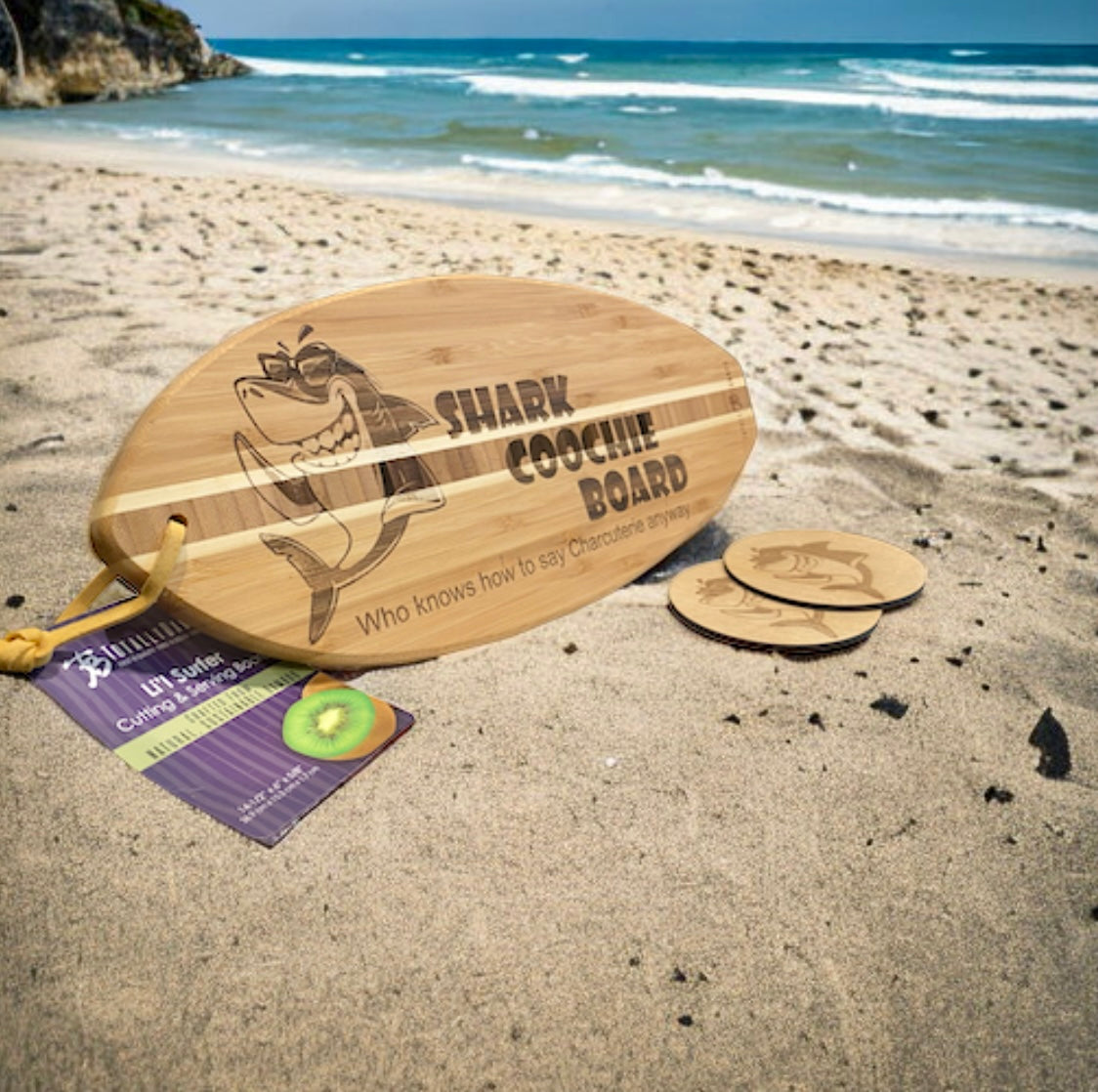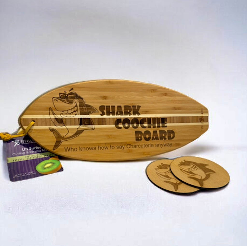Shark Coochie Surf Board (Charcuterie Board) with 2 Coaster